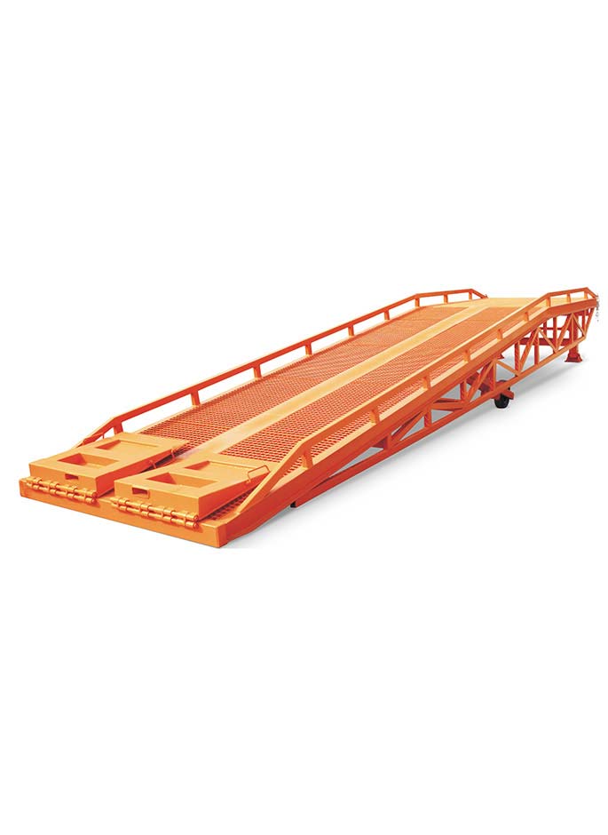 DCQH系列移動式登車橋使用于裝卸作業不固定的場合,叉車可以直接通過它從地面駛入貨車上進行裝卸作業,該產品具有高強度的焊接鋼構,采用手動液壓泵升降,不需外接電源即可輕松實現登車橋高度的調節,使裝卸作業更快捷高效。