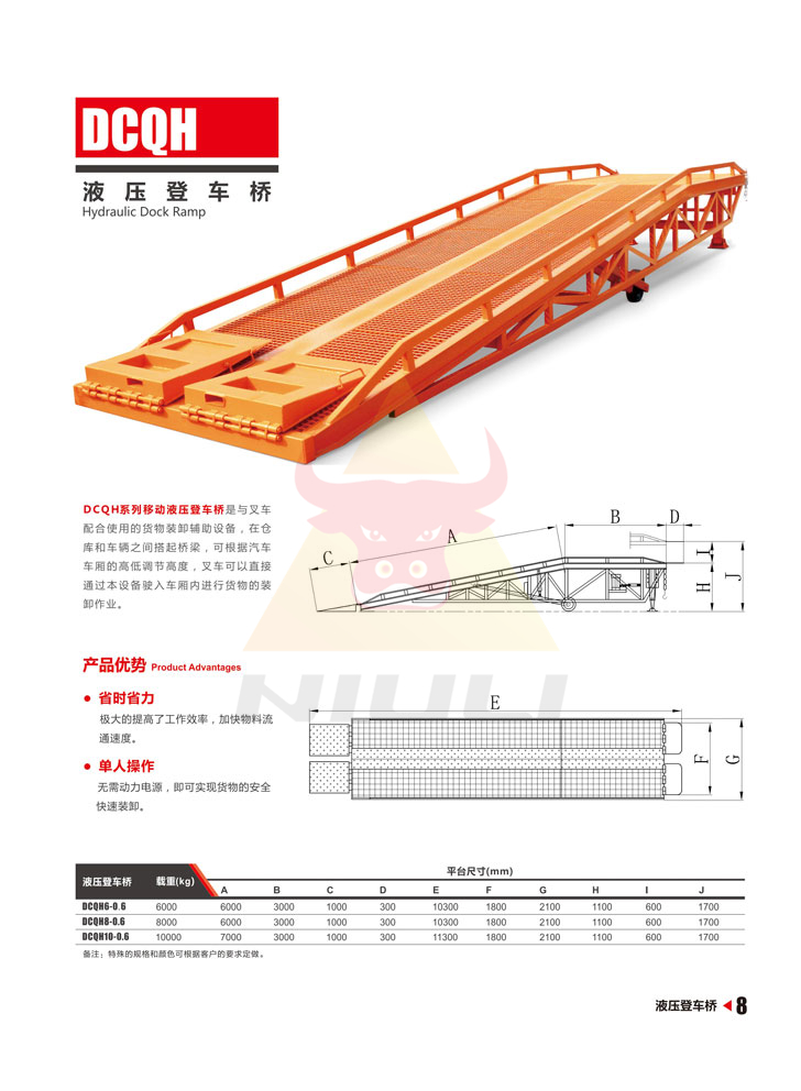 | 液壓登車橋 | DCQH6-0.6 | DCQH8-0.6 | DCQH10-0.6 | |