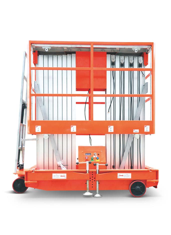 采用高強度航空鋁合金金桅桿設計,結構緊湊,機身設計輕巧,機身底座設有活動輔助輪,提供轉彎的良好性能,適合各工商業用途,如建筑安裝,工廠維修、保養,物業管理,展覽搭建,酒店設備維護、清潔,廣告安裝懸掛等。