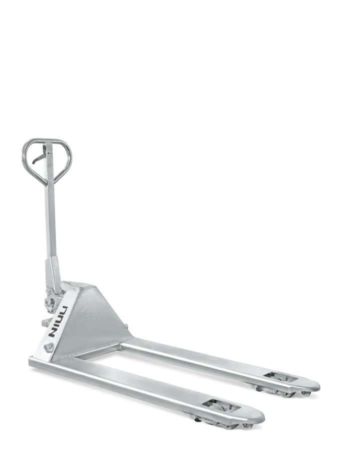 鍍鋅搬運車油缸采用防漏設計,車架、手把、油缸等裸露在外部的零件全部經過鍍鋅處理,配置不銹鋼軸承,耐磨尼龍輪,抗腐能力強。適用于冷庫及潔凈度、抗腐蝕性要求比較高的場所。