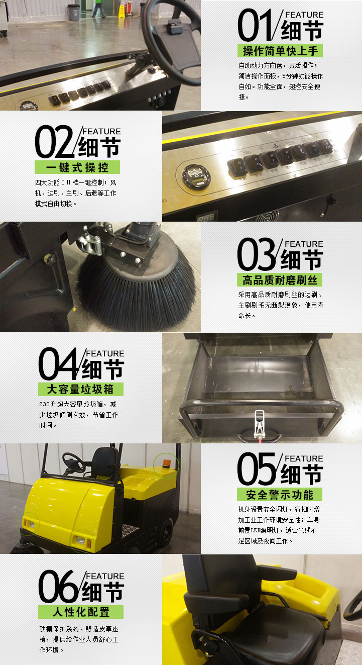 S20駕駛式掃地機是集吸塵、掃地、噴水為一體的帶頂篷掃地機,適合市政、商業、工業等領域的應用,可滿足全天候工作,專業解決路面上的灰塵(粉塵)、樹葉、沙粒、石塊、屑料、飲料瓶等各種類型的垃圾。