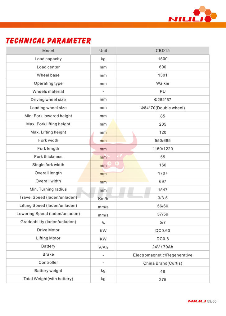 | Lift motor(V/Ah) | 12/1.6 | 12/1.6 | 12/1.6 | 12/1.6 | 12/1.6 |